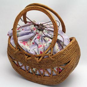【竹籠巾着】お洒落な透かしの編みこみ 生地/紫系