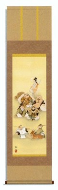 七福神 洛彩緞子本表装 尺三 榎本東山 竹翠会