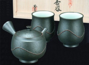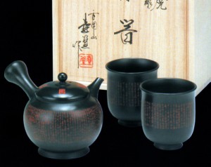 黒泥般若心経彫3点セット 逸品木箱入急須20号