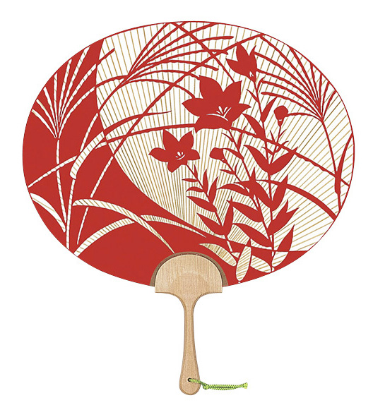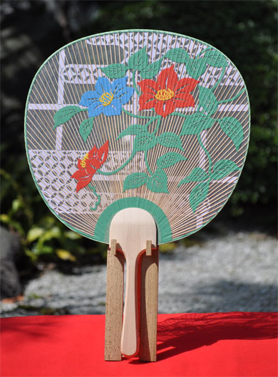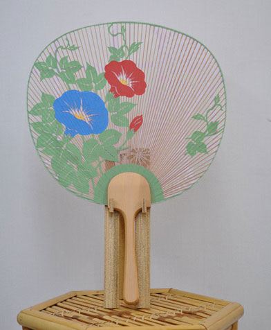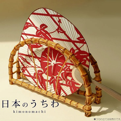 都うちわ「夏の大人浴衣に本格うちわ 格子朝顔」うちわたて付茜