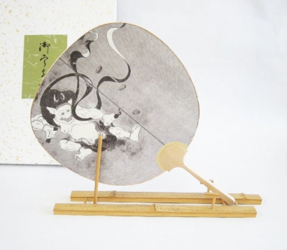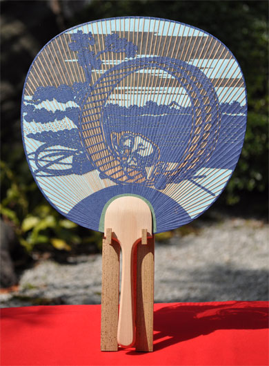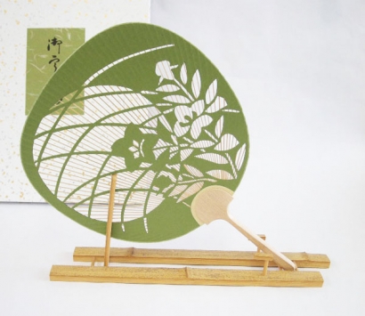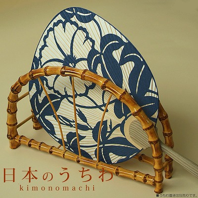 都うちわ「夏の大人浴衣に本格うちわ 格子朝顔」うちわたて付紺青