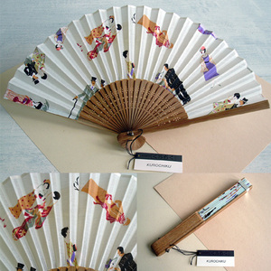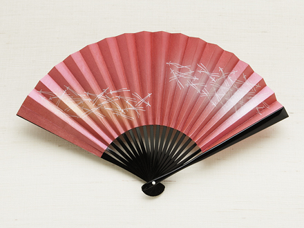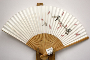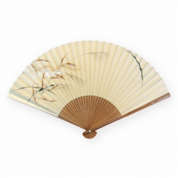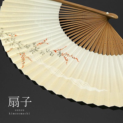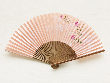 本格絵付扇子 唐木中彫「白×柔らかなゴールド 萩」女性用扇子 紙扇子