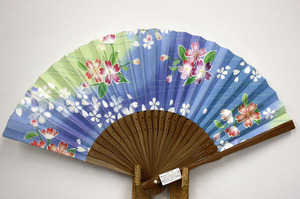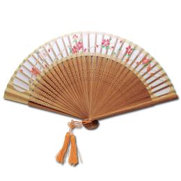 高級婦人用扇子 短地 透かし 桜 唐木中彫