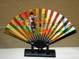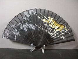 高級婦人用扇子 唐木中彫 大短地 桔梗