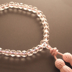 女性用一輪数珠(念珠) 本水晶切子・桃色房