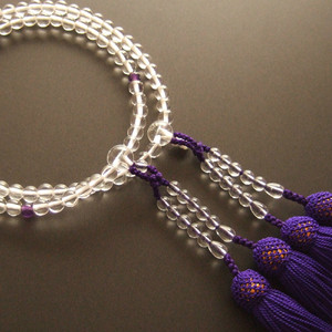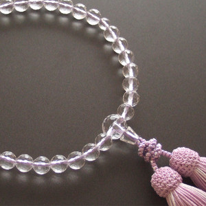 女性用一輪数珠(念珠) 本水晶128面切子・藤色房
