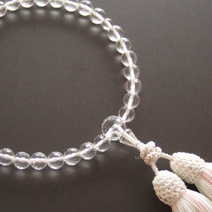 女性用一輪数珠(念珠) 本水晶128面切子・白色房