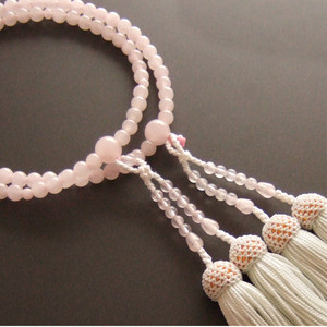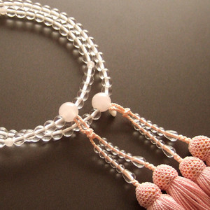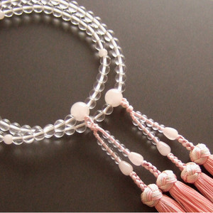 女性用二輪数珠(念珠) 本水晶丸玉紅水晶仕立薄桃色房