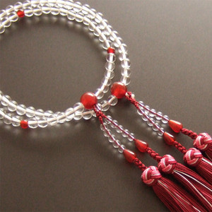 女性用二輪数珠(念珠) 紅水晶丸玉白色房