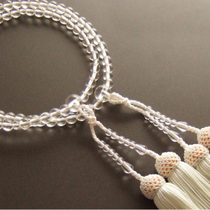 女性用二輪数珠(念珠) 本水晶丸玉・白色房