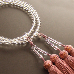 女性用二輪数珠(念珠) 本水晶丸玉灰桜色房