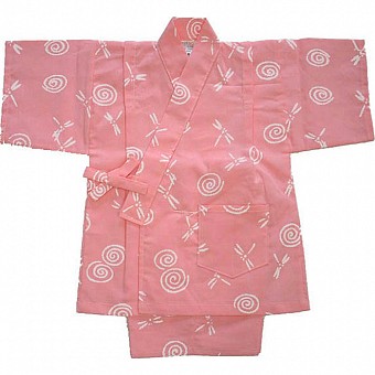 子供用甚平 渦巻きに蜻蛉 ピンク 1-2歳児用