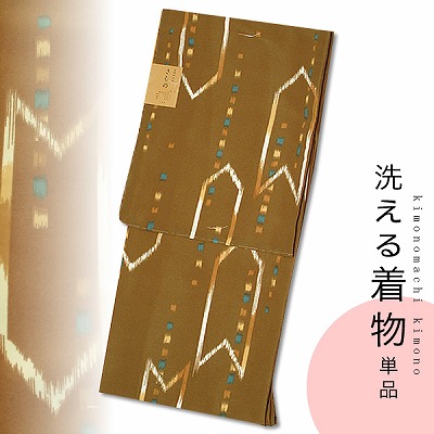 洗える着物(袷着物)単品「茶色 絣風縞に矢絣」洗える小紋[ 洗える着物 ] [ 小紋 ]洒落着 小紋 着物