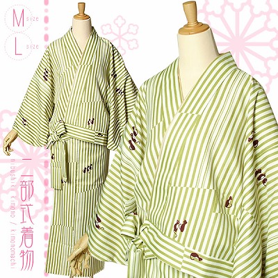 洗える二部式着物 M、Lサイズ「黄緑 縞に猫」京都きもの町オリジナル[ 二部式着物 ] [ ツーピース着物 ]洗える着物 二部式 ツーピース着物