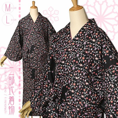 洗える二部式着物 M、Lサイズ「黒 更紗」京都きもの町オリジナル[ 二部式着物 ] [ ツーピース着物 ]洗える着物 二部式 ツーピース着物